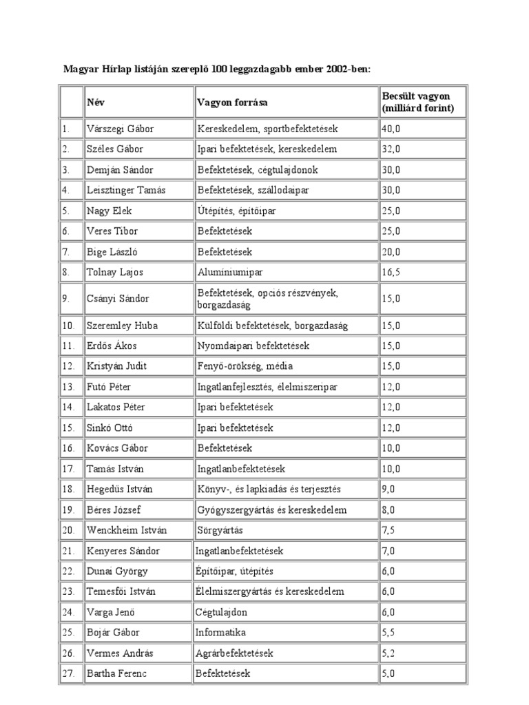100 Leggazdagabb Magyar : Top Lista Ok A Leggazdagabb Magyar Ingatlan Magnasok Ingatlanhirek - Érdekesség, hogy állítólag ő a legtöbb személyi jövedelemadót fizető magyar magánember.